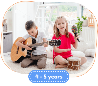 Sing, dance, and play with instruments while learning rhythm, melody, and