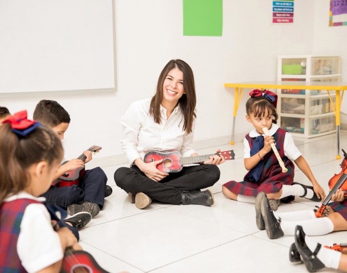 Sing, dance, and play with instruments while learning rhythm, melody, and